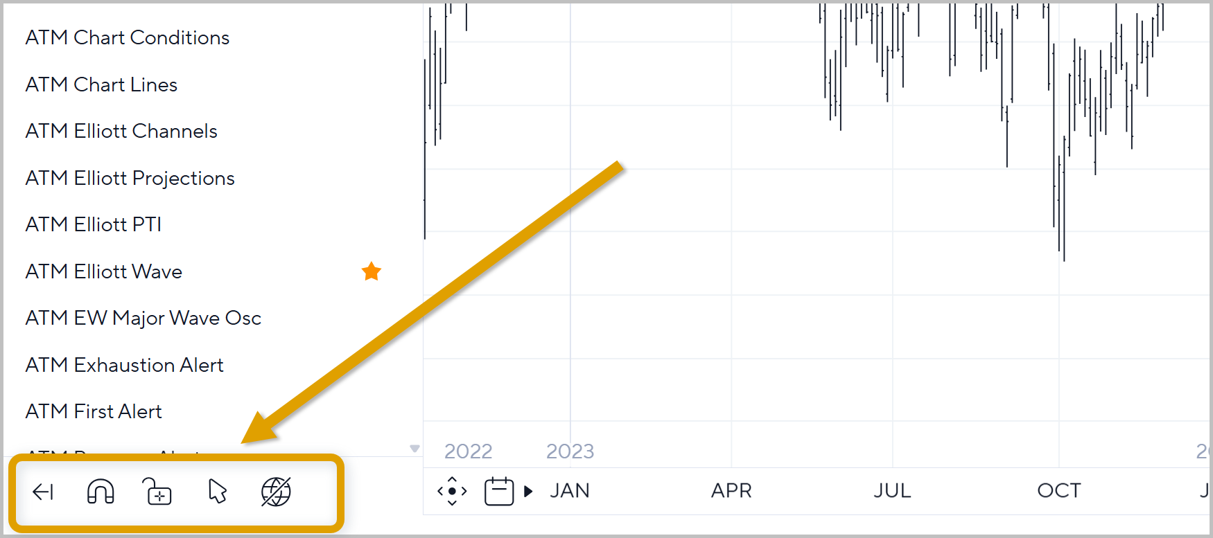 You'll see five icons in the lower portion of the Tool Menu. Clicking the 4th image controls data labels and crosshair lines.