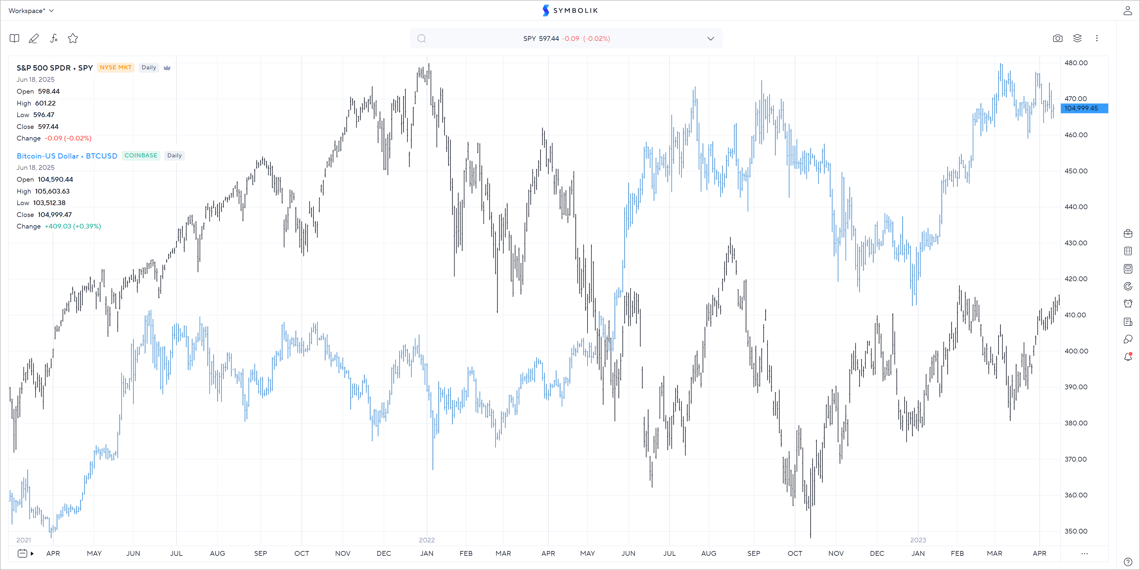 - Compare the performance of a stock vs. an index (e.g., AAPL vs. SPX)
