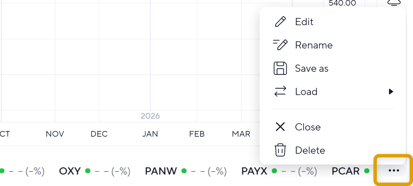 Hover over the applied Ticker Tape and click the ellipses menu.